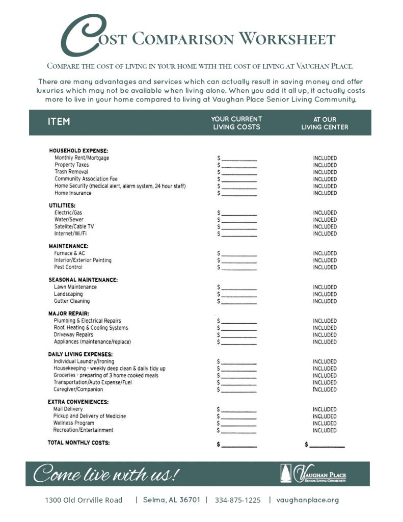 View our cost worksheet. Click to view a printable PDF version.